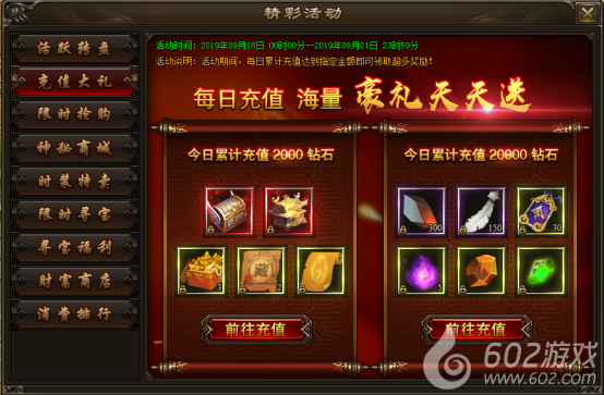 活动内容:活动期间,每日充值20元和200元即可获得超值奖励。