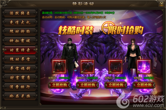 活动内容:活动期间,可购买酷炫时装,每人仅可购买1次。