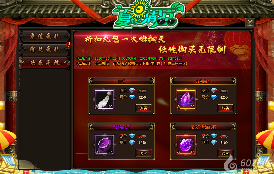 活动内容:活动期间,每日可以超低价格购买各种超值礼包,礼包可无限购买,礼包每日更换。